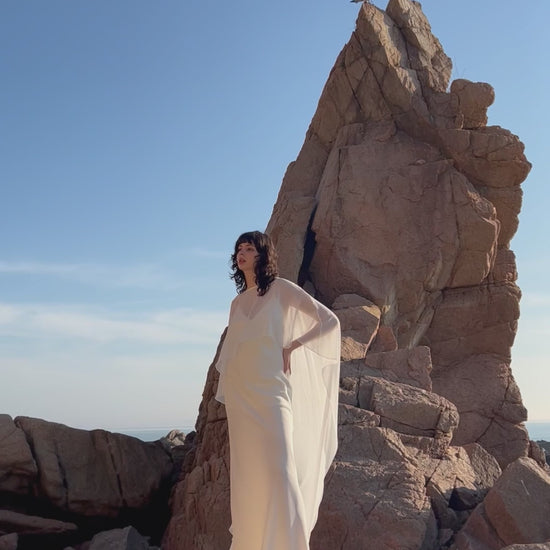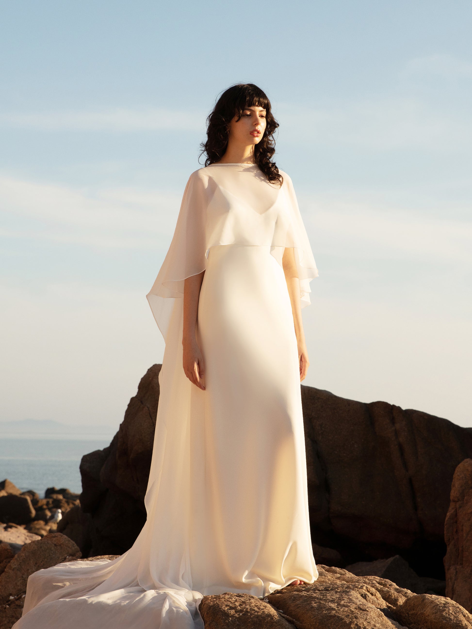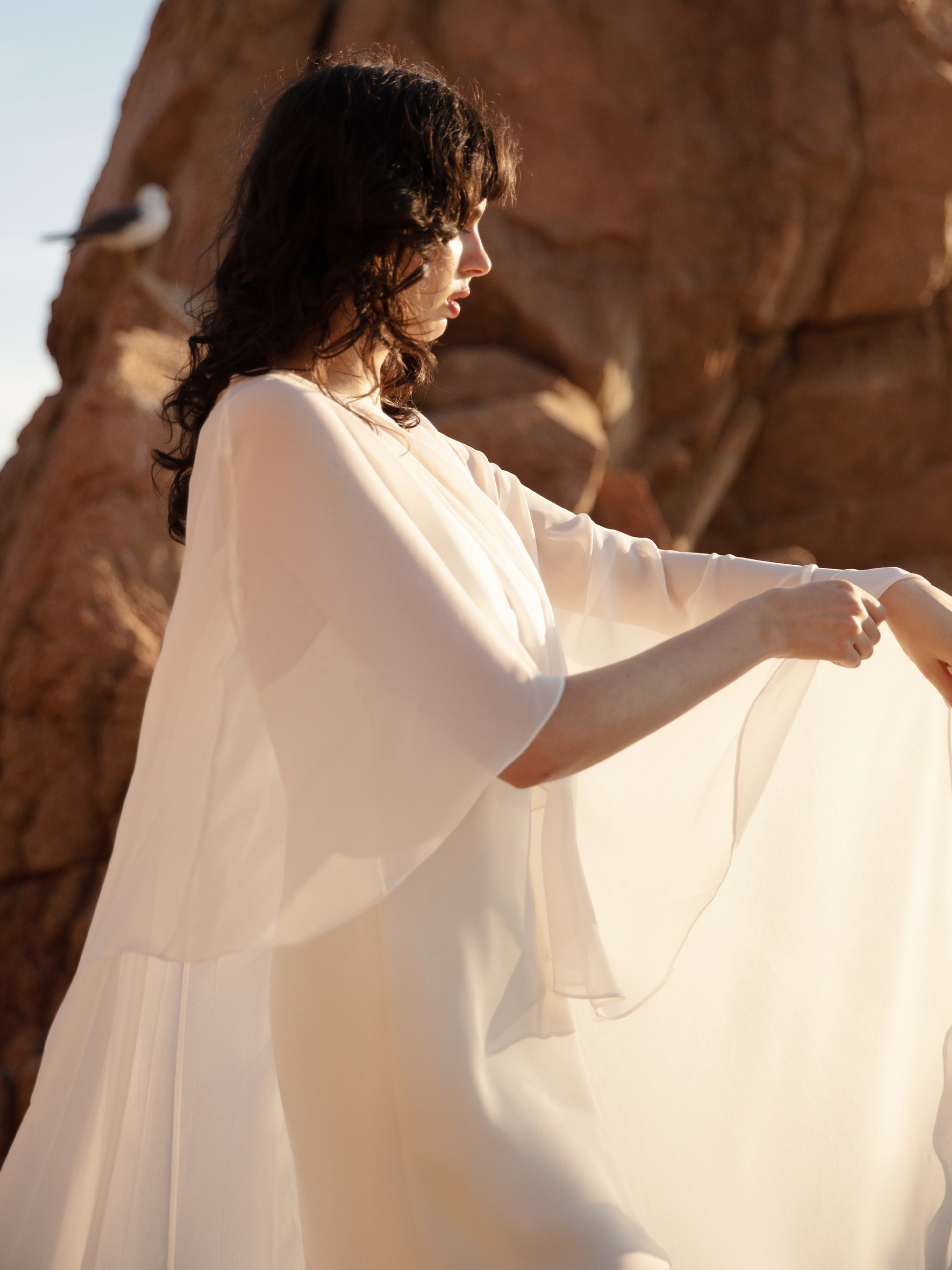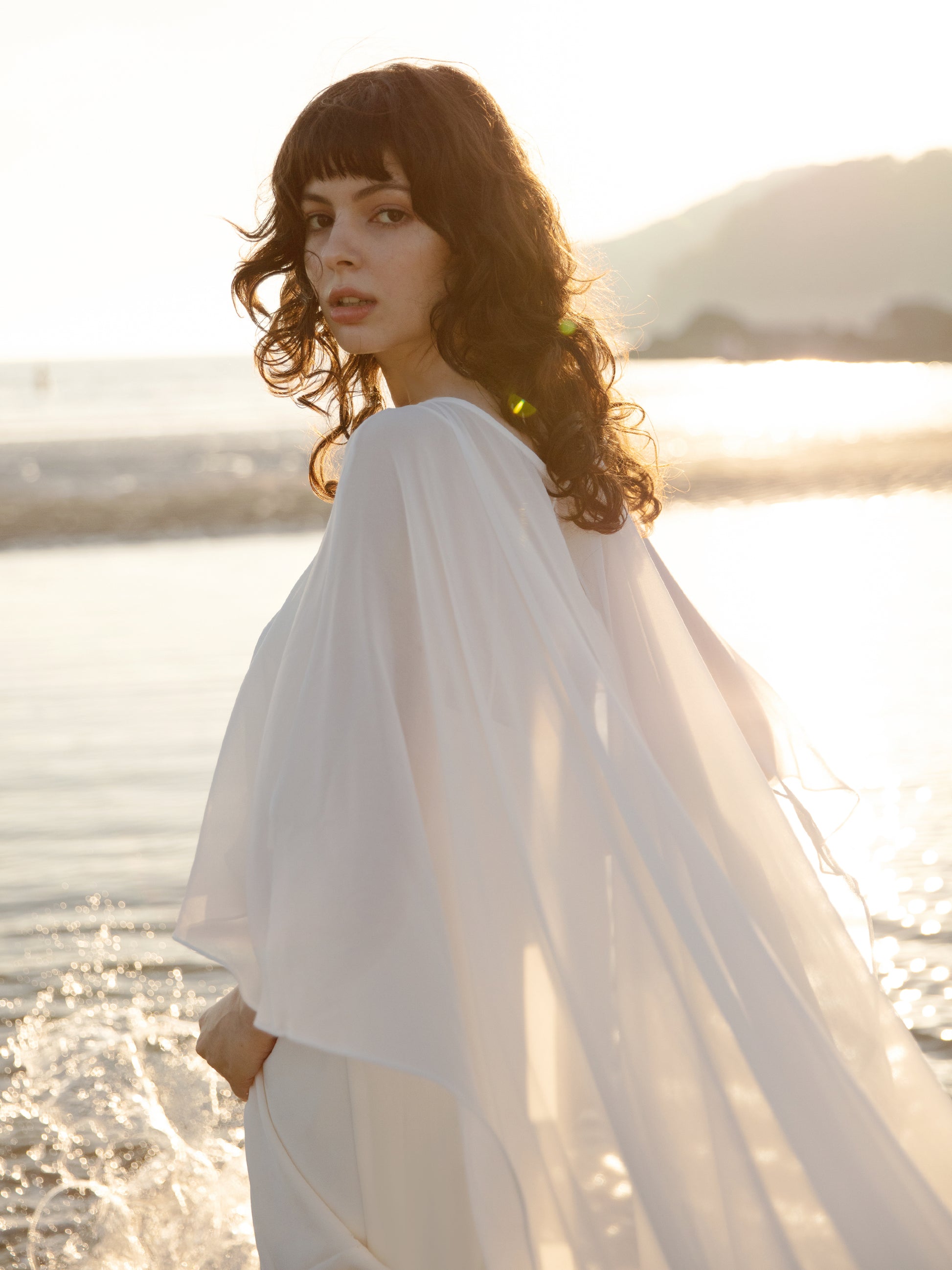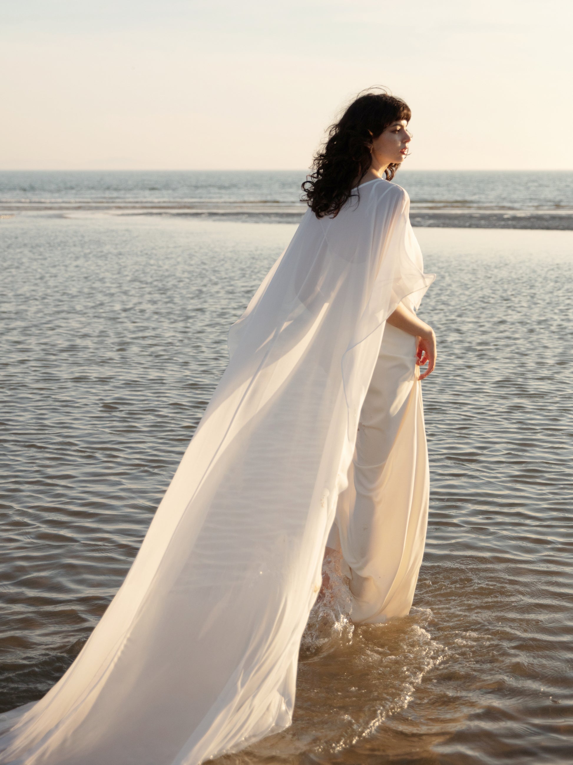 This bridal cape is a beautiful, easy way to add a bit of magic to your wedding look. Draping gracefully over your shoulders, it creates a stunning silhouette for unforgettable moments on your special day with this captivating accessory.