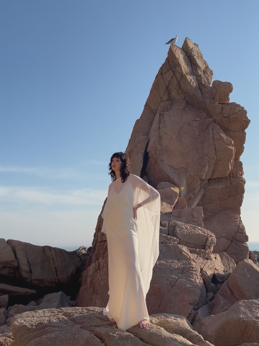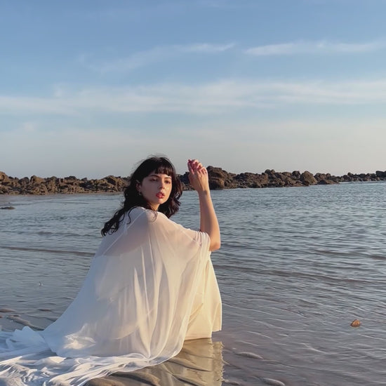 This bridal cape is crafted from light, flowy fabric and can be customized to your preference—whether you’d like it more transparent or slightly more opaque. Just let me know if you'd like any adjustments to make it perfect for your look!