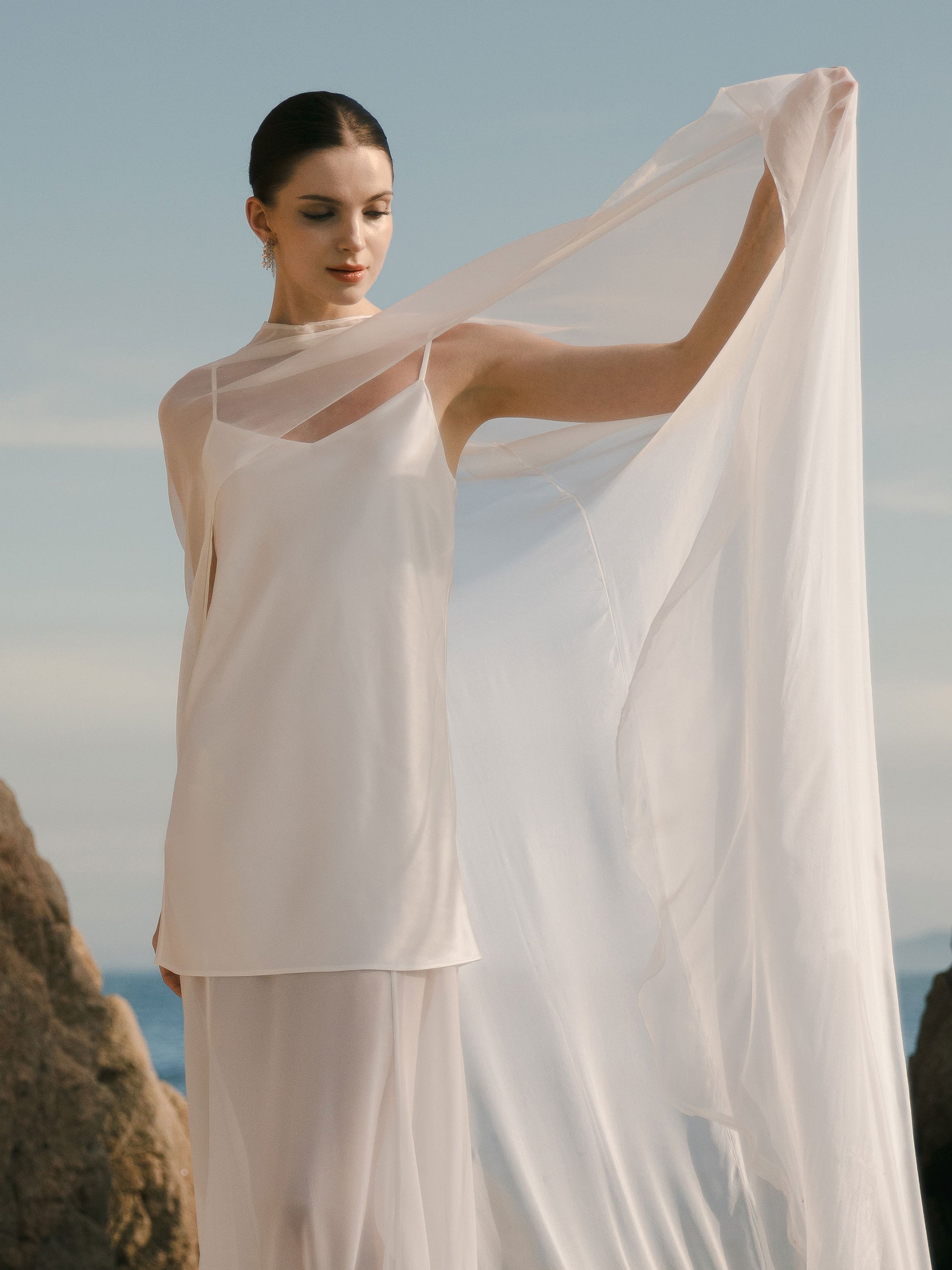 You can wear it just as it is for a modern, minimal look, or pair it with one of our capes if you want to add a little extra romance and movement (Capes are also available in our shop)