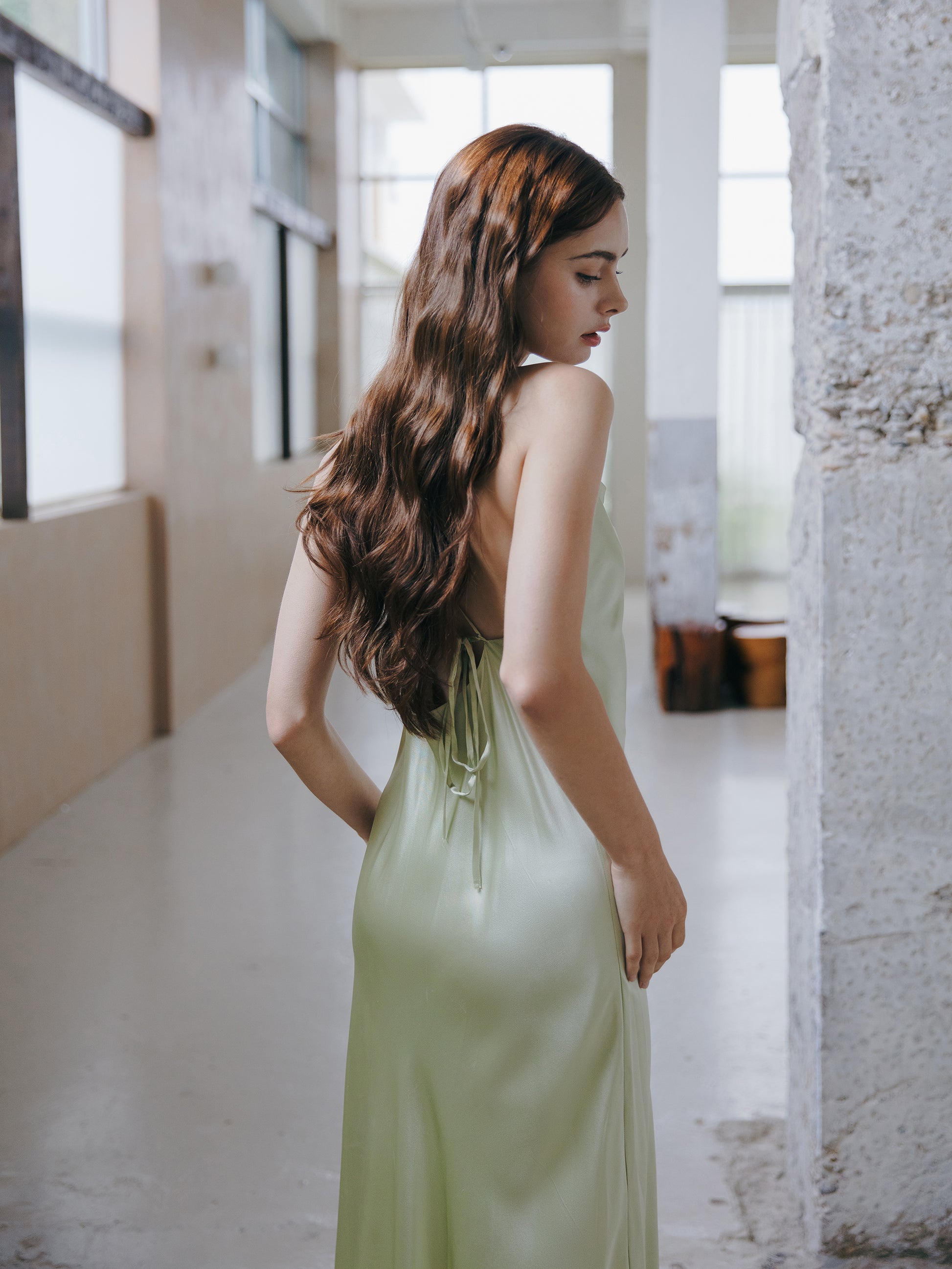 Crafted from the finest Mulberry Silk, renowned for its unparalleled softness and sheen, this gown promises exquisite comfort and sophistication for any special occasion.